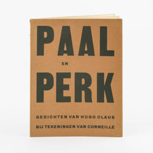(Corneille) Hugo Claus, Paal en Perk. Tekeningen van Corneille. Den Haag/ Antwerpen, Bert Bakker/ De Sikkel, s.d. Kl. in-4°. Ingenaaid onder orig. omslag. Rug bovenaan iets ingescheurd.