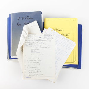 Christine D'Haen - Een uitgebreide verzameling typoscripten/ drukproeven (deels met correcties), enkele (kleinere) manuscripten en kopies van manuscripten: - 'Miroirs' (typoscript). - 'Een paal, een stem' (typoscript). - 'Innisfree' (enkele bladen...