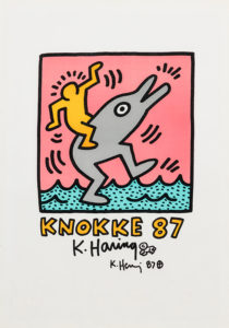 KEITH HARING (1958-1990) Offset en couleur. Affiche. Signée et datée au marqueur noir 'K. Haring. 87'. Cadre.