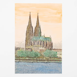 à 30 exemplaires numérotés avec la sérigraphie supplémentaire; le portfolio est numéroté au crayon ainsi que la sérigraphie au verso. Ce catalogue a été publié à l'occasion de l'exposition de Feldmann au Kunstverein für die Rheinlande und Westfalen à Düsseldorf en 1990 ; l'édition est limitée à 30 exemplaires et est accompagnée d'une grande sérigraphie de la cathédrale de Cologne, 'Ansicht vom Kölner Dom', avec de nombreux coloriages supplémentaires à l'aquarelle réalisés par Feldmann. Cologne, Buchhandlung Walther König, 1989. 4to, pp. 160, illustrations en couleur et en noir et blanc. Toile originale de l'éditeur, jaquette illustrée. Le livre et l'estampe coloriée à la main se trouvent tous deux dans un grand portefeuille en carton gris, avec une numérotation correspondante au crayon sur le coin avant du portefeuille et sur le colophon du livre. L'exposition a également eu lieu à Portikus à Francfort en 1990, accompagnée d'un livre de luxe séparé avec un buste en plâtre peint et une photographie.