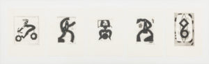 MARTINSEN Sans titre, 1989. Eau-forte. Un lot de cinq. Toutes signées et datées au crayon. Annotation 'EP'. Montées dans un cadre.