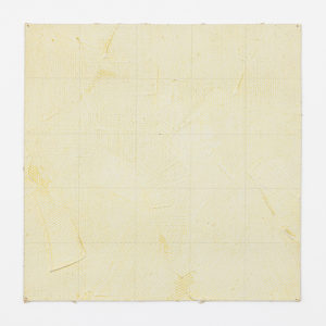 THOMAS RAJLICH (°1940) Sans titre, 1986. Peinture dorée et crayon sur toile. Signé et daté au verso. Trous de punaises dans les coins.