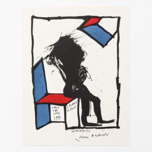 PIERRE ALECHINSKY (°1927) Carte de voeux. Offset. Signée à l'encre noire et avec une dédicace manuscrite à Robert de Smet.