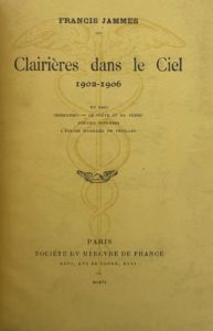 Clairières dans le ciel. Paris, Mercure de France, 1906 ; in-12, bradel demi-chagrin bleu nuit à coins, tête dorée, couverture (Patrice Goy). – Édition originale. Un des 12 Hollande (n° 8).