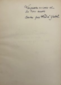 Sans lieu, septembre 1894 ; manuscrit de 24 ff., écrits au recto seul, in-4 demi-vélin blanc à coins, dos lisse. Manuscrit de jeunesse de ces contes étranges, spécialement calligraphié sur papier du Japon : « Pour mon ami Pierre Louÿs sont recopiés ces contes en même temps qu’ils lui sont dédiés ».