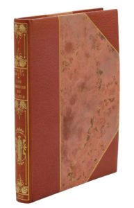 Paris, Librairie de l’Art Indépendant, 1895 (achevé d’imprimer du 3 décembre 1894) ; petit in-8 carré, demi-maroquin rose à coins, filet doré, dos lisse orné en long de fers spéciaux dorés et mosaïqués vert amande, tête dorée, couverture (Charles Lanoé).Édition originale du recueil qui propulsa Louÿs dans le cercle fermé des poètes salués à la fois par la critique et par le public.