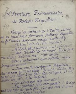 Sans lieu ni date vers 1902 ; in-4 manuscrit de 19 ff., bradel demi-maroquin brun à coins, dos orné en long. Manuscrit autographe préparé pour l’impression d’une nouvelle parue dans Sanguines en 1903 : deux sœurs se croient enlevées par un inconnu dans une voiture roulant à la vitesse phénoménale de 40 km/h.