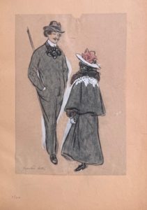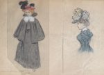 - 8 dessins originaux en couleurs anonymes, collé sur papier et montés sur onglets, non signés.