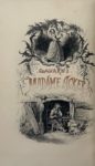 Paris, Curmer, 1842 ; petit in-8, maroquin à long grain bleu nuit dans le goût romantique, plaque dorée sur les plats avec volutes, entrelacs et motifs à mille points, dos à nerfs très orné, roulette intérieure, doublures et gardes de moire rose, chiffre PV discrètement doré dans les doublures, non rogné, étui (Mercier Sccr de Cuzin).Réunion complète des 10 livraisons qui composent le recueil à partir de textes de Gavarni, Dickens (traduit par La Bédollière), etc. Il est considéré comme l’un des modèles de réalisations romantiques par ses thèmes et par son exquise illustration gravée d’après Trimolet, Penguilly, Daubigny, etc. : frontispice général, 11 gravures hors texte, 52 gravures sur bois et 10 vignettes à l’eau forte (tirées sur Chine appliqué) dans le texte, le tout en premier tirage.