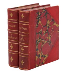 Toulouse, décembre 1905 - novembre 1906 ; 12 fascicules en 2 vol.in-16, demi-maroquin rouge à coins, dos à nerfs ornés, têtes rouges, couvertures (accrocs à une coiffe). Tête de collection de cette revue menée par Touny-Lérys Marc Dhanio et Georges Gaudion. On y trouve des poèmes de Fagus, Léon Deubel, Gossez, etc.