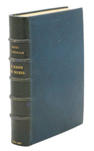 Paris, Mercure de France, 1911 ; in-12, maroquin janséniste bleu roi, dos à nerfs, cadre intérieur de même maroquin avec 3 filets dorés et lyre aux angles, doublures et gardes de soie imprimée multicolore de style indien, doubles gardes, tranches dorées sur témoins, couverture, étui (René Kieffer).Édition originale.