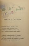 Un des 60 exemplaires sur Japon (n° 50), celui-ci ornée d’une quinzaine d’aquarelles originales non signées, dans des tons pastels. Le décor de la reliure reprend celle de la page 55.