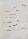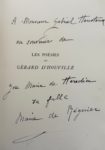 RÉGNIER Marie de – Gérard d’HOUVILLE. Les Poésies. Paris, Emile Chamontin, 1930 ; in-4 broché, étui. – Envoi autographe de l’auteur à Gabriel Hanotaux « en souvenir de José-Maria de Heredia, sa fille ». On joint deux lettres de Marie de Régnier à Madame Pagnerre et à Gabriel Hanotaux.