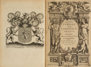 [ARIOSTE (L’)]. Orlando Furioso […] con le Annotationi, gli Avvertimenti, & le Dichiaratoni di Ieronimo Ruscelli […] . In Venetia, Appresso Felice Valgrisi, 1603. In-4°, veau, double filet doré encadrant les plats, dos à nerfs richement orné (reliure de l’époque) .