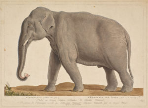 J oint : une planche en double « L’éléphant des Indes » mise en couleurs.