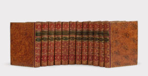 [MÉTASTASE]. Opere del signor Abate Pietro Metastasio . In Parigi [Paris], Presso la Vedova Herissant, 1780-1782. 12 volumes in-4°, veau, triple filet doré encadrant les plats, dos à nerfs ornés en maroquin rouge, tranches dorées (reliure de l’époque) .