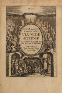 Célèbre livre mystique du jésuite Antoine Sucquet, illustré de scènes étranges et dramatiques, animées de créatures imaginaires et effrayantes.