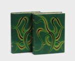 KIPLING (Rudyard). • Le Livre de la jungle . •• Le Second Livre de la jungle . S. l., Creuzevault Éditeur, n. d. [1941]. 2 forts volumes grand in-4°, maroquin vert sombre, large décor mosaïqué de feuilles d’agave en box noir et maroquin vert et jaune ornant le premier plat et courant sur le dos, tranches dorées sur témoin, doublure et garde de daim ocre, couvertures illustrées conservées, chemise à rabats en demi-maroquin noir et étui de l’éditeur (Creuzevault) .
