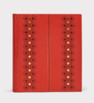 SCHWOB (Marcel). Vies imaginaires . S. l. [Paris], Le Livre Contemporain, 1929. In-4° (266 x 230 mm) maroquin orange, large décor de deux ensembles de cercles bruns et pastilles dorées séparés verticalement par trois filets ornant les plats, dos lisse orné, tranches dorées sur témoin, doublures et gardes de soie orange, couvertures illustrées en couleurs conservées, étui (G. Cretté succ. de Marius Michel) .