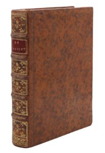 Bel exemplaire, frais et grand de marges. Il contient, reliées en fin de volume, 4 pp. de la Feuille hebdomadaire du 20 sept. 1758, qui rendent compte des troubles provoqués par le livre à sa sortie et qui reproduisent le texte de la rétractation d’Helvétius.