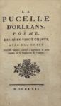[VOLTAIRE] — La Pucelle d’Orléans, poëme, divisé en vingt chants, avec des notes. S.l. [Genève, Cramer],