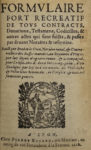 [DU TRONCY Benoît] — Formulaire fort récréatif de tous Contracts, Donations, Testaments, Codicilles & autres actes qui sont faicts & passez par devant notaires & tesmoins.