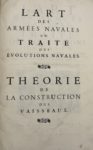 1° L’Art des armées navales est l'ouvrage le plus célèbre du jésuite Paul Hoste (1652-1700), spécialiste des mathématiques appliquées à la marine, qui l'a rédigé sur ordre et sous les yeux du maréchal de Tourville, d'après les idées de celui-ci et du maréchal d'Estrées. Il est illustré de 134 planches hors texte et de et 6 vignettes par Demasso, Bouchet, Ogier et Cars.