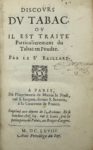 [PRADE (Jean Le Royer de)] — Discours du tabac, ou il est traité particulièrement du tabac en poudre. Par le Sr Baillard.