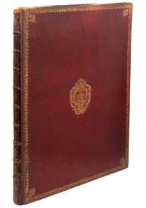 Grand in-folio, maroquin rouge, dentelle dorée, armes de la ville de Paris, fleurs de lis aux angles, dos orné de fleurs de lis, tranches dorées (Reliure de l'époque).Le plus célèbre et le plus monumental des plans de Paris, commandé par Turgot en 1734 pour promouvoir l'image et le prestige de la capitale française.