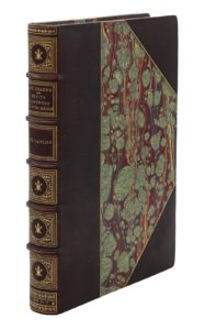 Paris, Quantin, 1879 ; in-8 carré de [2] ff., xlvi-[2] pp., 246 pp., [2] ff., demi-maroquin brun à coins, filet doré, dos à nerfs très orné avec cœur et flèches, tête doré, couverture (V. Champs). Charmante publication tirée à petit nombre, de la collection des Petits Conteurs du xviiie siècle. Elle est ornée d’un portrait de Caylus gravé par Lalauze d’après Cochin, d’un en-tête d’après Eisen et d’un fac-similé de lettre. Elle réunit plusieurs textes badins du comte de Caylus, observateur amusé des mœurs et du langage populaire du xviiie siècle.