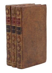 Paris, Théophile Barrois, 1786. 3 volumes in-12, veau jaspé, dos lisse orné, tranches jonquille (Reliure de l'époque).Édition originale française d'une des œuvres majeures du roman gothique anglais.