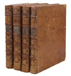 Amsterdam, aux dépens de la Compagnie, 1735. 4 volumes in-4, veau marbré, dos orné, tranches mouchetées (Reliure de l'époque).La plus belle et la plus complète édition des voyages de Chardin (l'originale de 1686 consistant en un seul volume in-folio), tant pour le texte (la première s'arrête en 1673) que pour les gravures (nous avons 83 planches, y compris le frontispice répété).