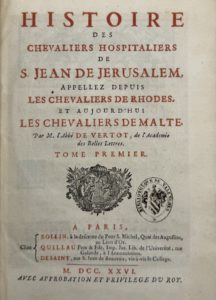 VERTOT (René Aubert de) — Histoire des chevaliers hospitaliers de S. Jean de Jérusalem, appellez depuis les chevaliers de Rhodes, et aujourd’hui les chevaliers de Malte.