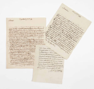 — CRÉMIEUX l'ainé à Carpentras et Arles. — 2 lettres autographes signées à M. Boulet, notaire royal, auxquelles on a ajouté une lettre du Marquis de Roques au dit notaire pour la même affaire. — Arles, 2 sept. 1781. — 3 pièces.