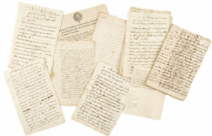 NAQUET. — Pièces liées à la famille Naquet de Carpentras : Contrats, lettres de clame, pièces de procédure, reconnaissances. — 15 pièces manuscrites et imprimées. 75 pages, in-4, 1742-1772.