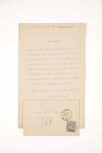 Théodore de BANVILLE (1823-1891) — 1 lettre autographe signée Théodore de Banville, adressée à Paul DALLOZ directeur de journal. 1p.in-8 Paris 1877 (enveloppe timbrée).