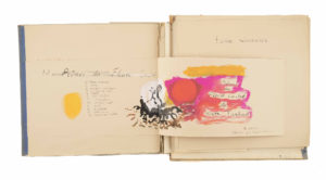 [Charles DEBIERRE] — Maquette originale d’un livre pour illustrer « Poèmes du Fleuve caché » de Jean Tardieu, gouaches et plumes sur papier. — Dimensions : 32,5 x 35 cm.