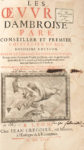 LES OEUVRES D'AMBROISE PARÉ, par Ambroise Paré Edité par Jean Gregoire, Lyon, 1664. — 12e Édition. Folio. 852 pages de texte + index.