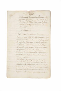 PROJET DE TRAITEMENT des maladies vénériennes des personnes indigentes présenté à M.M. les Directeurs de l'Hôtel Dieu par le syndic actuel du collège des médecins de Marseille, 1772. — Mnuscrit du XVIIIe de 9 pages et 1/2 in-8 rédigé à...