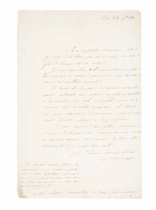Comte de LACÉPÈDE (1756 -1825) — Lettre autographe signée “Le Cte de Lacépède” adressée au naturaliste Niçois Antoine Risso, Paris le 10 novembre 1810. — 1 page in-folio à l’encre brune sur papier filigrané.