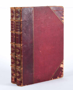 rouge de l’époque, dos ornés et titres dorés, 5 nerfs et tomaison sur chaque reliure.