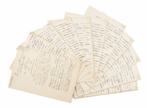 (31,5x21 cm) ajouts, ratures et corrections dont plusieurs au crayon bleu.