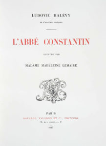 L’ABBÈ CONSTANTIN, Ludovic HALEVY, Illustré par Madeleine LEMAIRE, Boussot et Valodon éditeurs, Paris 1887 — 1 vol in-4, 136 pp., demi-reliure cuir marron à coins, dos à nerfs avec pièce de titre, tranche supérieure dorée. — Illustré...