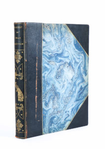 Rubaiyat de Omar KHAYYAM, édition d’Art H. Piazza, Paris — Omar Khayyam l’astronome poète Persan. — 1 vol. in-4 (30,4 x 24,5 cm), demi-reliure cuir marron à coins et liserés dorés, dos lisse orné d’un paon et de décors floraux, titre...