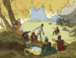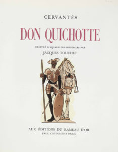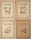 “DON QUICHOTTE de la Mancha”, CERVANTES, illustrations Jacques TOUCHET, Edition du Rameau d’Or à Paris, s.d. vers 1940 — 4 tomes brochés, in-4 sur papier Hermine.