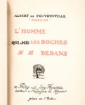 L’HOMME QUI A MIS LES BOCHES DEDANS, à Paris chez Eugène Figuière par Albert de POUVOURVILLE « Matgioi », 1919 — In-8, belle reliure cuir illustrée en couleur, présenté dans son cartonnage.
