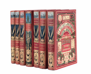 Jules VERNE, Ensemble de 7 volumes, éditions Hetzel (dont 6 dos au phare) — L'Ile Mysterieuse, Michel Strogoff, Les Naufragés de Jonathan, Docteur OX, Tribulations d'un Chinois en Chine, Un Capitaine de Quinze ans, Le Secret de W. Storitz.