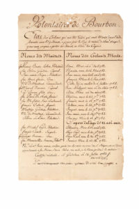 VOLONTAIRES DE BOURBON — Etat des esclaves qui ont étés tués ou qui sont morts dans l’Inde servants aux hôpiteaux à payer par le Roy, à raison de 1500 livres chaque pour ceux propres à porter les armes et 1200 livres les Capors. — Pièce...