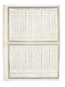 [EMPIRE] — Calendrier pour l’An Treize, 1er de L’Empire Français, 1804 à 1805. — Pièce imprimée in -fol (46x34 cm) avec arrivée et départs des courriers à Aix, Foires de la ville d’Aix, Affranchissements et Saisons. — A Aix...