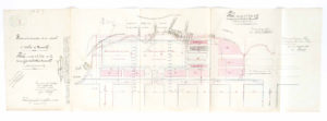 - Plan de Vérification et constatation des travaux demandés par dépêche ministérielle du 3 août 1863, plan général comprenant l’ensemble définitif des Docks et des Entrepôts, résultant du dernier décret à la date du 28 août 1863 (partie constituant l’entrepôt réel et l’entrepôt fictif).
